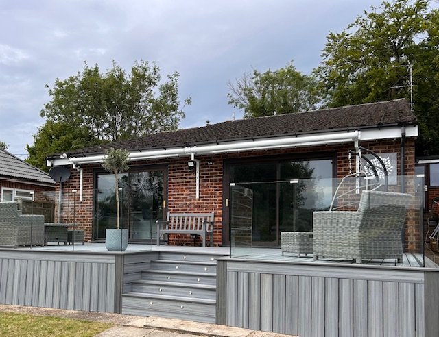 Trex Enhance Naturals Rocky Harbor with Trex Signature Glass balustrades in Bromley Kent.